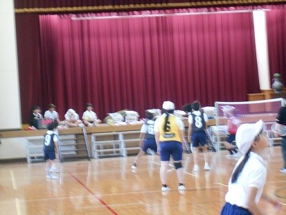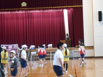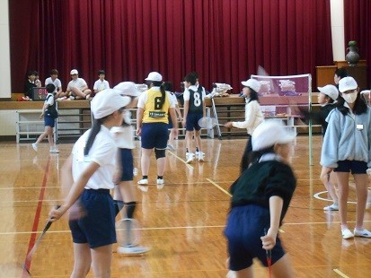 体育館では,バドミントンなどのゲームをおこなっています。