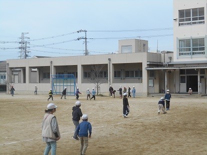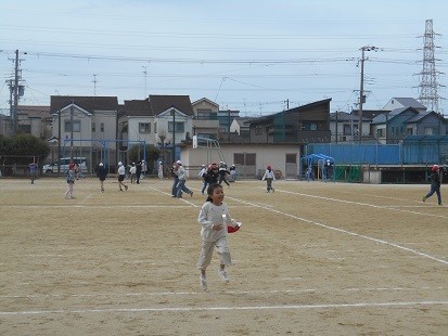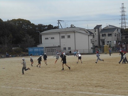 運動場では,長縄跳びや鬼ごっこ,ボール遊びなどをしています。