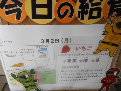 3月になりました。今月で令和7年度の給食は終了になります。給食にかかわる全ての方に,感謝して給食をいただくようにしましょうね。