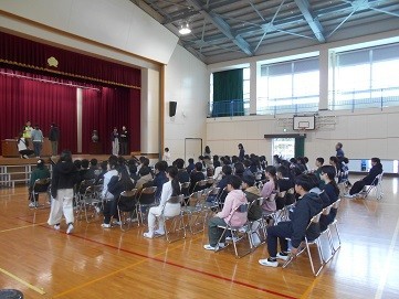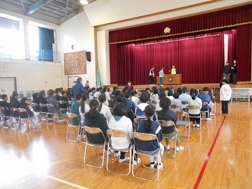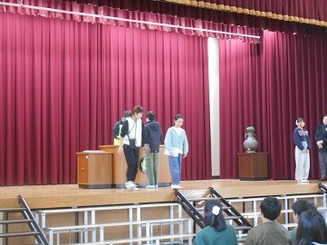 証書授与の練習をしました。なかなか難しい動作が多いので,慣れるようにしましょうね!