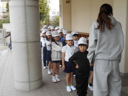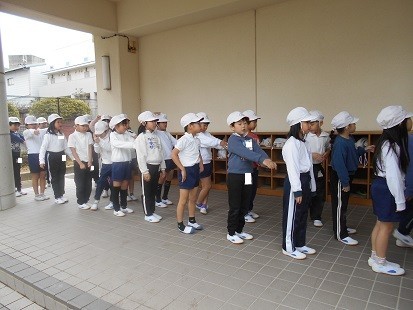 体育館では,6年生と入れ替わって,1年生が体育の学習をおこないます。