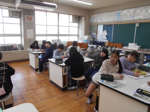 5年2組は理科室で検流計の使い方を学んでいます。