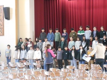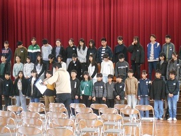 6年生が卒業式の練習をしています。