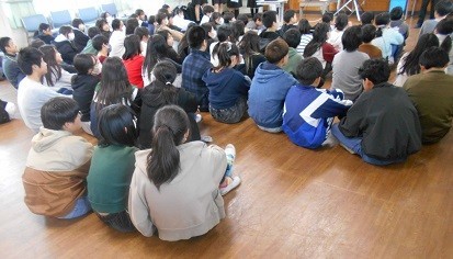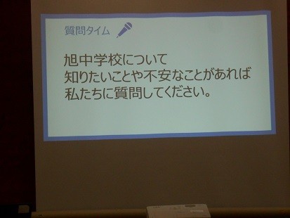 今日は旭中学校の皆さんが来校し,中学校について6年生に説明してくださいました。