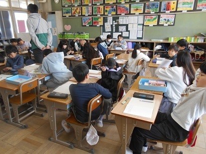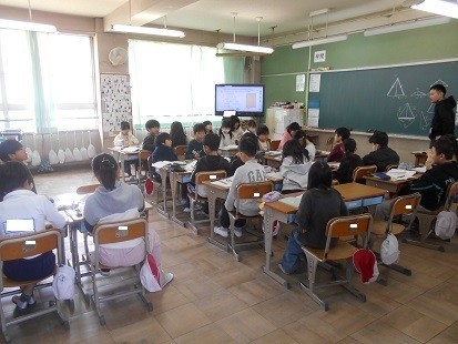 三角定規を使って,三角形の性質についてみんなで考えています。