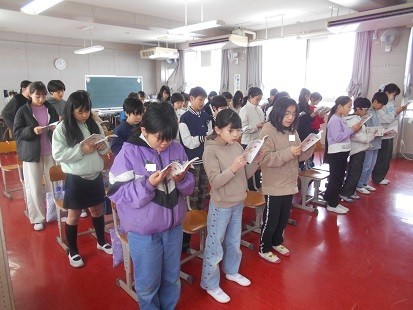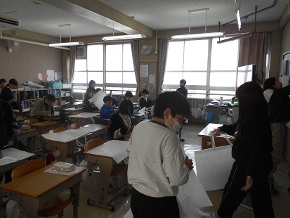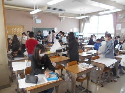 5年生は音楽で,「花は咲く」を歌っています。大きく,美しい声が響いています。