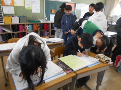 6年2組でもさっそくメッセージのページに書き込み!