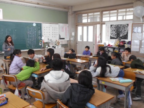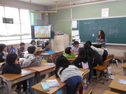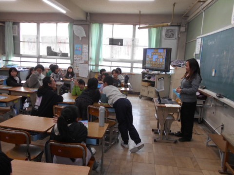 今日はNSの先生との外国語活動の時間。野菜を英語で答えていました。