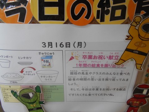 6年生の皆さんは,今日で小学校の給食が終了となります。6年間,小学校での給食はどうでしたか? 様々な思い出があると思います。