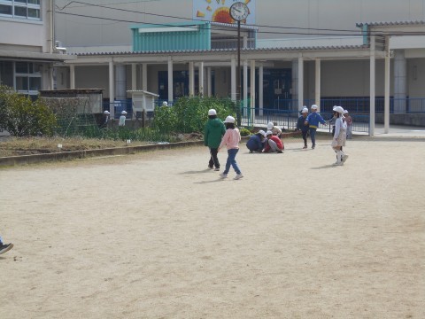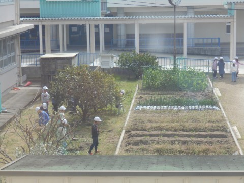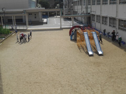 1年生は中庭を散策したり,中庭で遊んだりしています。