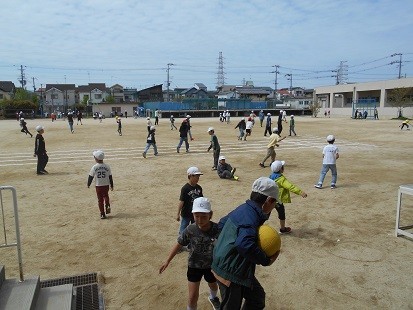 鬼ごっこやドッジボールなどをして遊んでいる子どもが多いです。