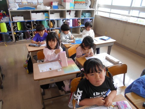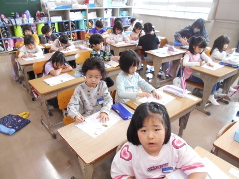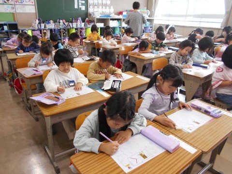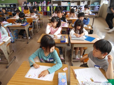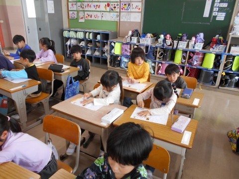 1年2組ではひらがな「く」を練習していました。