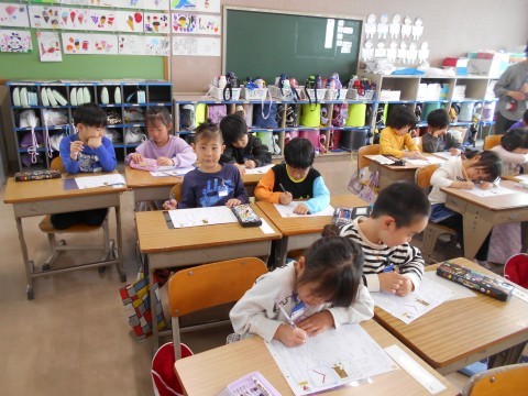 鉛筆の持ち方、書く時の姿勢、この数日で学んだことをしっかり出せています。