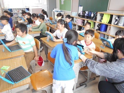自分のタブレットを取り出しました。ていねいに使ってね!