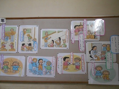 1年生の掲示板には,「あいさつ」の掲示があります。