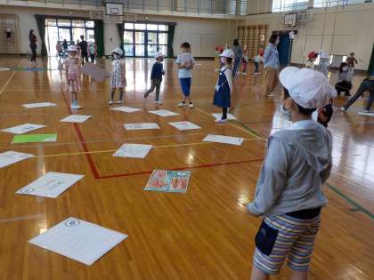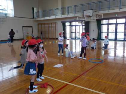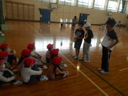 体育館で4つの遊びを楽しみました。みんな楽しそうでした。