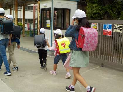 今朝の登校のようすです。今日は,スポーツテストがある日です。みんな,元気かな?