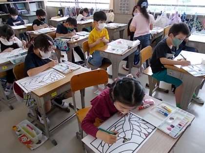 三原色を混ぜながら様々な色をつくっていました。一枚一枚丁寧に塗り,きれいな羽に仕上げていました。