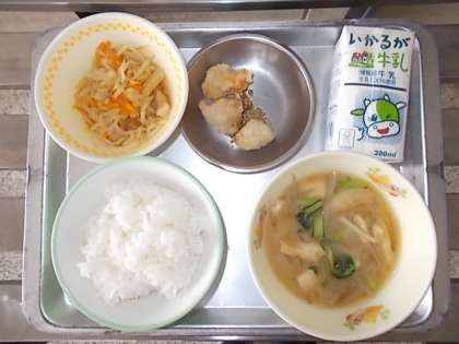本日のメニューは「みそ汁・切り干し大根の煮物・鶏肉のごまがらめ・ごはん・牛乳」でした。