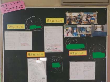 3年生の学年掲示板が目にとまったので,ご紹介します。この掲示板には,3年生の先生方が大切に思っていることを貼り出しています。