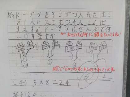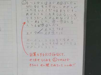 下の写真には,ノートをどんなふうに書くとよいのか,先生のコメントからわかりますね。