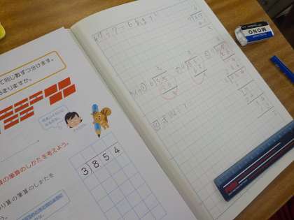 わり算の筆算のわられる数の桁数が多くなってきました。