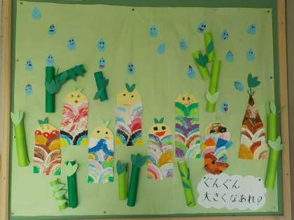 ※写真は,完成した「たけのこぐんぐん」の壁面です。