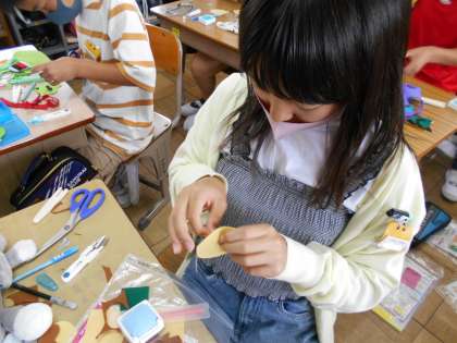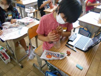 1組 図工ではにわを作っています。素敵な作品ができてきました。
