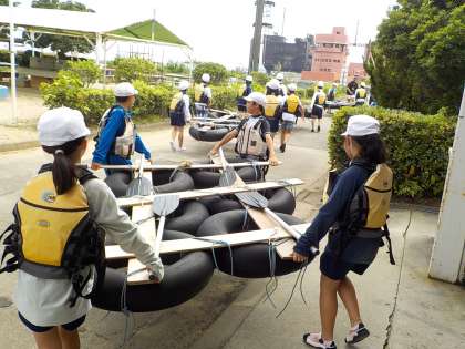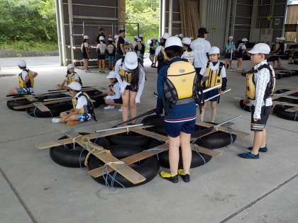 いかだチームとカヤックチームに分かれて午前中の活動が始まりました。