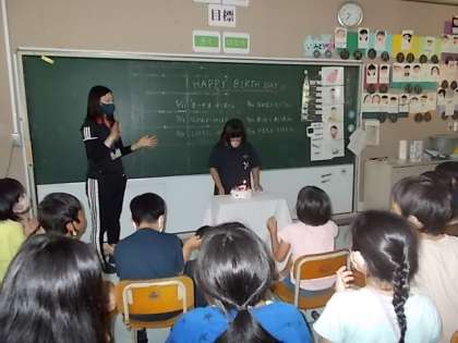今日は,1学期の誕生日の子をみんなでお祝いしました。歌を歌ったり,ミニゲームをしたりしました。みんな楽しそうに活動できていました。