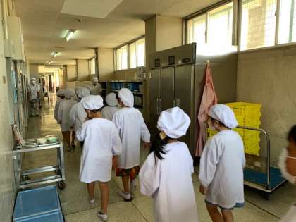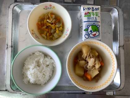 本日のメニューは「肉じゃが・野菜のソテー・ごはん・牛乳」でした。