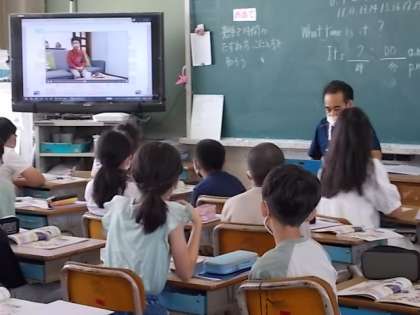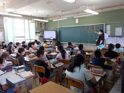 1組では,外国語活動を行っています。2組は,新出漢字の練習です。