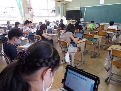 5年生のようすです。PCを使って,調べ学習をしています。