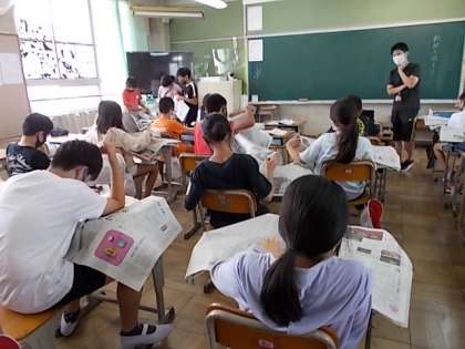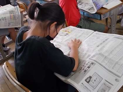 そして,一人ひとり,気になる記事があったようです。「オリンピックの選手の活躍」,「ガラスの食器いろいろ」,「アフガニスタンのタリバン勢力」,「福島原発の処理水の放出」,「がんの治療法」など…。記事によっては,大人でも難しい内容をじーっとみつめて,読んでいました。