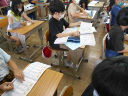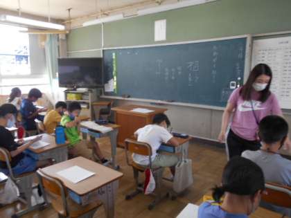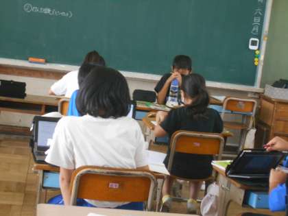 理科ではサランラップを用いて顕微鏡で観察をしたり,タブレットを用いて調べ学習をしたりしました。漢字の学習の時間では,見本を見ながら丁寧に書いていました。