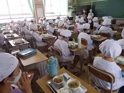 4年生の教室では、これからみんなで給食をいただくところです。