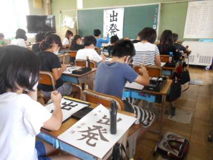今日は,はとぶえの習字をしました。「出発」の間隔やはらい,線の太さなど,見本を見ながら丁寧に取り組んでいました。何度も何度もやり直し,新しい半紙をもらいに来る子もいて,とても積極的な姿が見られました。