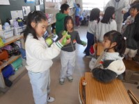 1年2組では,算数の学習をしていました。今日は,1年生が初めて板書をノートにとるということに取り組んでいました。とてもよい姿勢で,丁寧に字を書いて,すばらしいノートをとることができました。