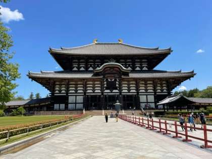 奈良公園に到着し、まず1・3組が東大寺大仏殿、2組が東大寺ミュージアムを見学しました。これから交代して見学します。