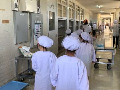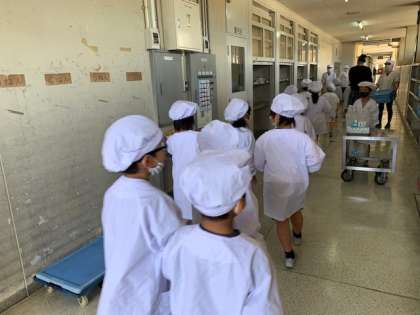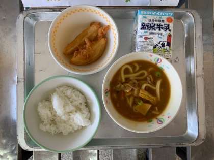 本日のメニューは「カレーうどん・長崎てんぷら・ごはん・牛乳」でした。