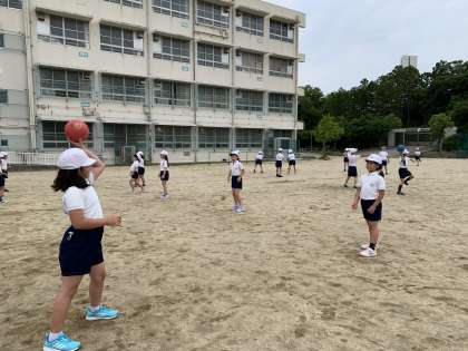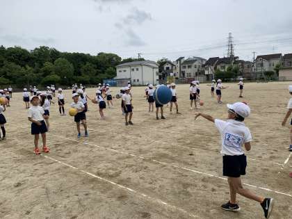 体育の学習で、ボールを使った運動に挑戦しました。しっかりと体を動かすことができました。