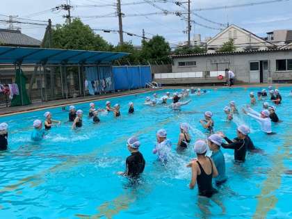 3・4時間目、5ー1と5ー3が水泳授業を行いました。