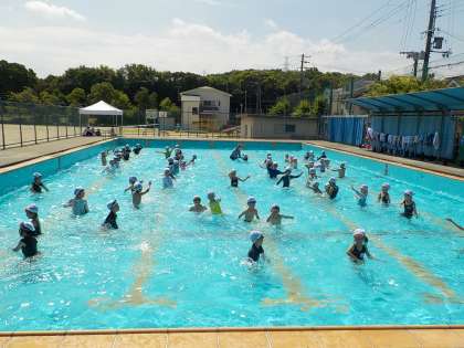 1年 体育 公開日 2022/06/23 更新日 2022/06/23 1年 気温が低かったり,雨だったりして2回水泳の授業が中止になりましたが,今日やっとプールに入ることができました。プールの入り方を学んだり,動物になりきって歩いたり,体育参観で踊ったツバメダンスをプールの中で踊ったりして,楽しく安全にプールに入ることができました。次は28日(火)です。いいお天気になりますように。