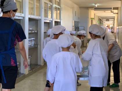 本日のメニューは「ビーンズシチュー・野菜のソテー・オリーブパン・プト・牛乳」でした。「プト」はフィリピンの蒸しパンです。
