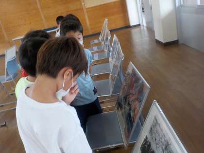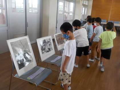 1年 平和学習 公開日 2022/07/11 更新日 2022/07/11 1年 今週は大仙小学校の平和学習週間です。77年前の7月10日,堺大空襲が起きました。そのことを知り,平和について考えます。1年生も,先生の絵本の読み聞かせ,パネル,DVD視聴等で,平和や命の大切さについて学びました。
