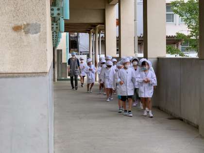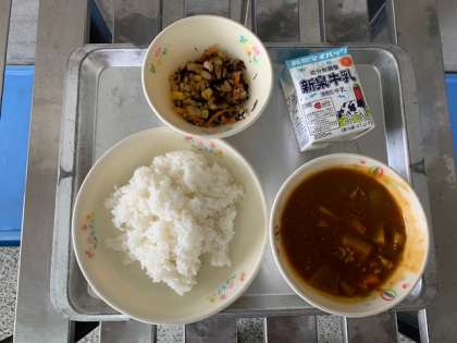 本日のメニューは「夏野菜カレーライス・豆とひじきのサラダ・ごはん・牛乳」でした。