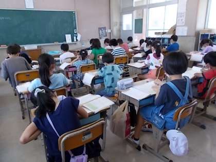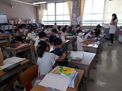 3年生の学習のようすです。1組は、算数で「一学期の復習」に静かに取り組んでいました。2組は,理科「昆虫」について学習していました。