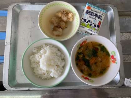 今日の給食 公開日 2022/09/01 更新日 2022/09/01 給食 9月1日木曜日 今日の給食 本日のメニューは「キムチスープ・鶏肉のごまがらめ・ごはん・牛乳」でした。 どのクラスも毎日きちんと2列に並んで給食場にやってきます。