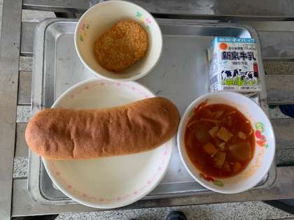 本日のメニューは「ミネストローネ・コロッケ・コッペパン・牛乳」でした。