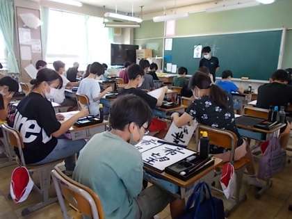 6年生の学習の様子です。習字や算数の学習をしていました。習字は落ち着いて集中していました。算数は,活発な意見が出ていました。すばらしい6年生です。